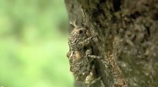 この上の3枚の静止画は2001.05.28代々木公園の西側、地下鉄・代々木公園駅の出入り口脇の、丁度大人の目の高さほどの大谷石の壁の上を歩いているのを見つけ撮影したものである。もちろん初めて目にしたゾウムシだったこともあるが、このSFチックな体型や配色に驚かされ、当方がゾウムシばかりでなく昆虫そのものに興味を高めていったきっかけとなる出会いでもあり、デジカメで記録することの面白さを教えてくれた写真である。