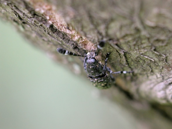 このシリジロヒゲナガゾウムシが先の太くなった触覚で木の幹をパタパタ叩きながら歩き回る愛嬌のある姿をまた見る機会が来るのだろうか。