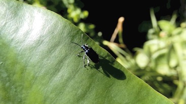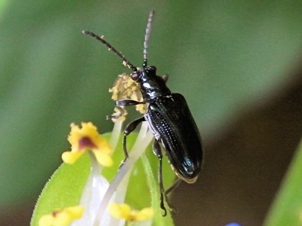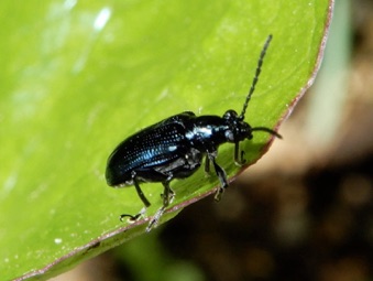 何故かルリクビボソハムシは自宅の庭にたくさん出現する。ナスやミニトマトなどの苗と一緒に付いてきたものが居着いているのかも知れない。(2011年追記:自宅で撮影した個体は「カワリクチボソハムシ」の2型かも)