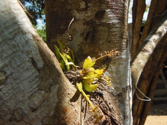 2015.02 HHL :多分、これは当方がチェンライの市場で山取りのランを購入して、HHLに持ち込んだ株だと思う。HHLでもPYYでも同様の自生の株を見たことがないのと、村の居住地域の乾いた環境の木に着いていたことから、人工的に着生させたものの気配が濃厚。でも、はっきり覚えていない。