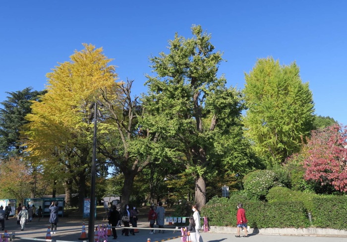 IMG_2129_r2 / 2020.11月14日(土) 西洋美術館脇のイチョウ(の黄葉の進み具合)は三者三様。
