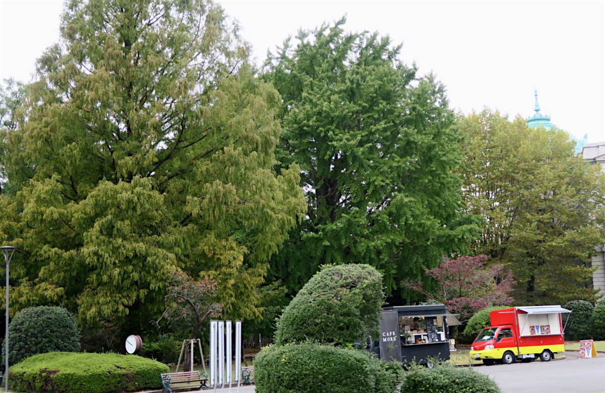 東博のイチョウ(中央)を見て来ましたがまだ青々しています。