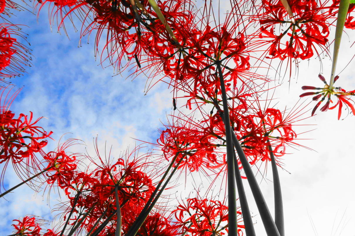 km沿いに咲く彼岸花を見て歩きました。